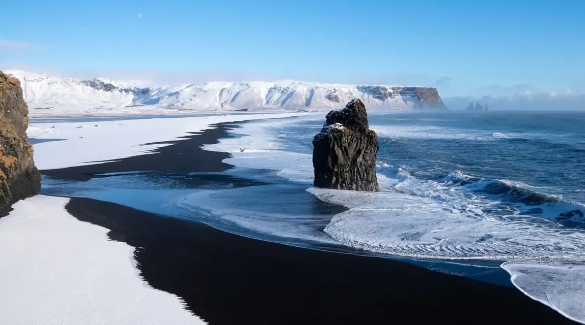 Ein weiterer Tag in Island, ein weiteres unglaubliches Naturwunder: Heute Morgen erreichen wir den Aussichtspunkt Dyrholaey, in einem felsigen Plateau mit einem riesigen Steinbogen. Nachdem wir die Aussicht von oben gesehen haben, fahren wir hinunter zum schwarzen Sandstrand von Reynisfjara, wo wir das Gefühl haben, auf dem Mond zu laufen.