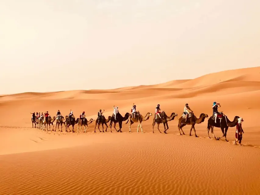 Unterwegs sehen wir viele andere Kasbahs und Ksour (Burgen) und wir werden sicherlich einen Zwischenstopp einlegen, um die berühmte marokkanische Gastfreundschaft zu schätzen. Die Reise geht weiter, bis wir schließlich in Erfoud ankommen, wo wir unsere Autos stehen lassen, um in den 4x4 zu steigen, der uns in die Sahara-Wüste bringt! Wir erreichen Merzouga, umgeben von hohen Sanddünen: Hier wechseln wir erneut unser Transportmittel, um uns mit... Kamelen vertraut zu machen! Sie werden uns mitnehmen, um die Sahara bei Sonnenuntergang zu erkunden – ein Erlebnis, das wir schwer vergessen werden, neben einer Nacht in einem Zeltlager unter dem Sternenhimmel!