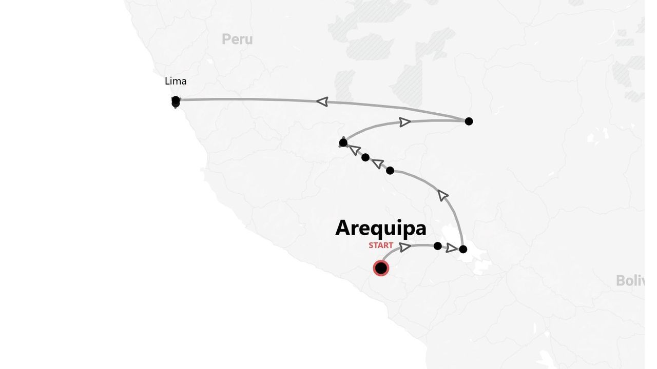 Il tour inizierà dalla splendida città bianca di Arequipa, situata a 2.335 metri sul livello del mare, un ottimo inizio per acclimatarsi e abituarsi alle altitudini elevate che dovremo affrontare durante il viaggio. Dopo un paio di giorni inizierà la nostra risalita delle Ande verso il lago Titicaca, dove conosceremo i locali e avremo modo di immergerci nelle loro tradizioni. Da qui, ci sposteremo sempre on the road verso una delle attrazioni più famose e mozzafiato del Perù, la Rainbow Mountain, la montagna dei 7 colori a ben 5.200 metri di altitudine. Il nostro viaggio continuerà sulle tracce degli Inca, alla scoperta di quella che a detta di molti sembrerebbe essere la vera “El Dorado”, Cusco. Da qui partirà anche la nostra esplorazione dell'incredibile sito archeologico di Machu Picchu, luogo unico al mondo che ci lascerà veramente senza fiato (viverlo per crederci). La nostra avventura, però, non finirà qui, perché ci addentreremo nella foresta Amazzonica, il polmone verde del nostro pianeta, ricchissimo di vita ed esperienze incredibili che ci faranno cambiare modo di vedere le nostre vite e il nostro quotidiano. Infine, torneremo sul livello del mare, a Lima, la capitale, per rientrare in contatto con il mondo moderno, cambiati dentro e fuori, grazie a un'avventura che ci porteremo per sempre dentro per il resto delle nostre vite.